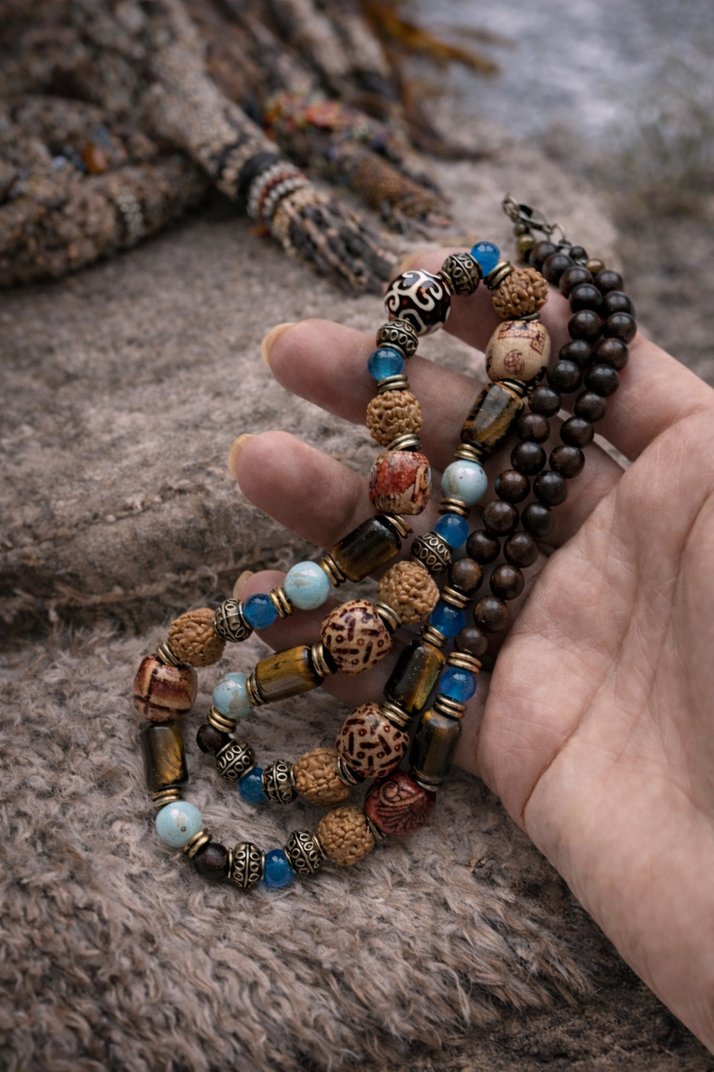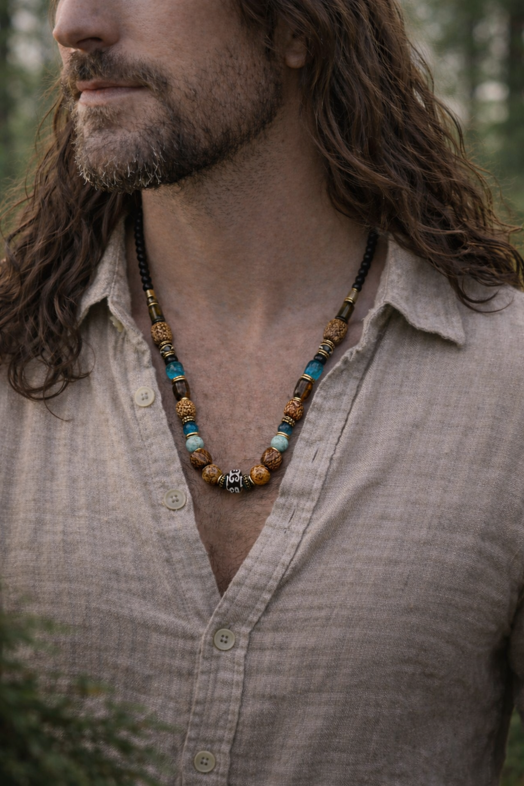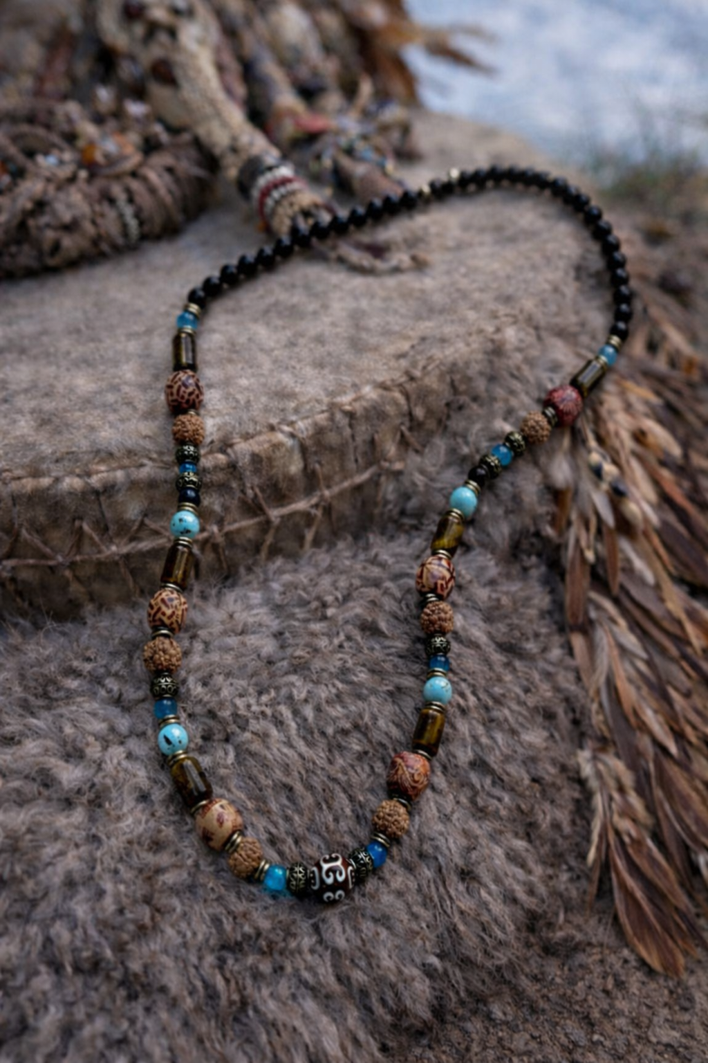 Šis vėrinys – tai skirtingų gamtos elementų dermė, sujungianti dvasinę simboliką, apsaugą ir vidinį balansą.